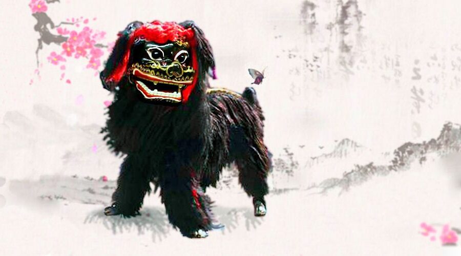El león gigante y el dragón chino en la sala de fiestas de Marbella